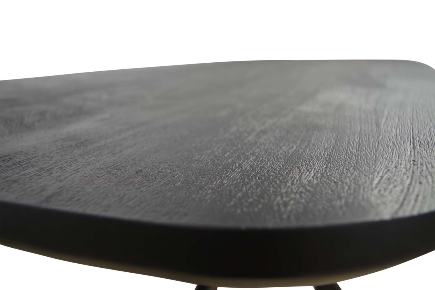 Eettafel Ben is een Deens ovale eettafelblad met een rand van 45 mm gemaakt van massief hout gemonteerd op een zwarte metalen spinpoot. Door het massieve blad voelt deze tafel erg robuust en stevig. Door de Deens ovale vorm geeft het de ruimte een speels effect.