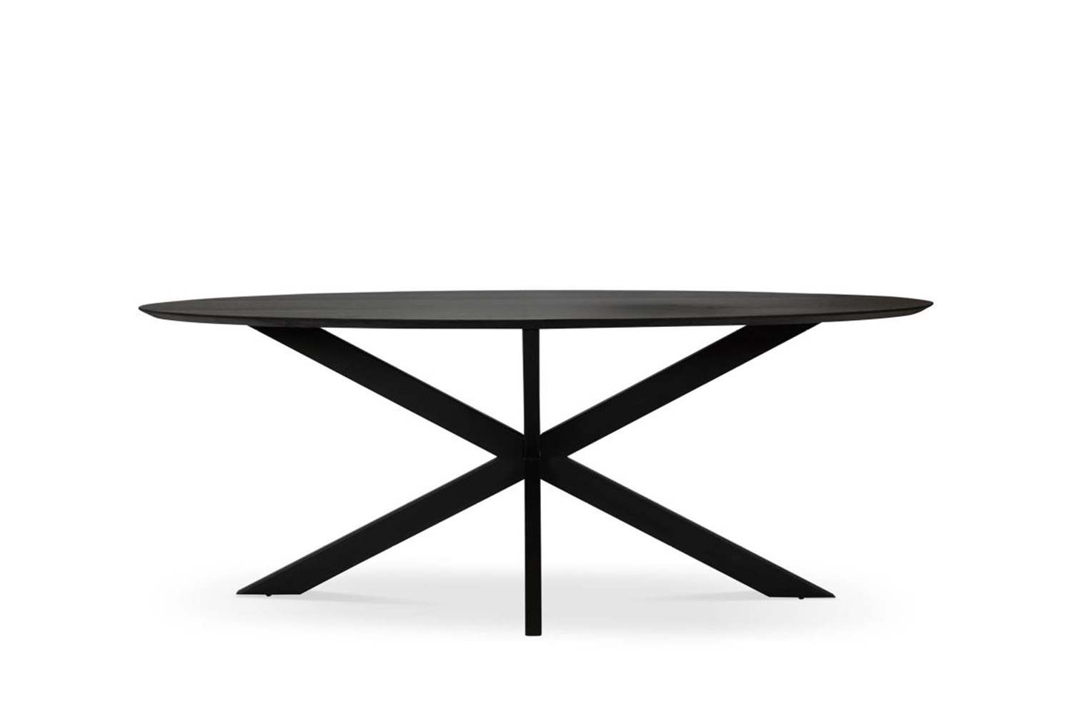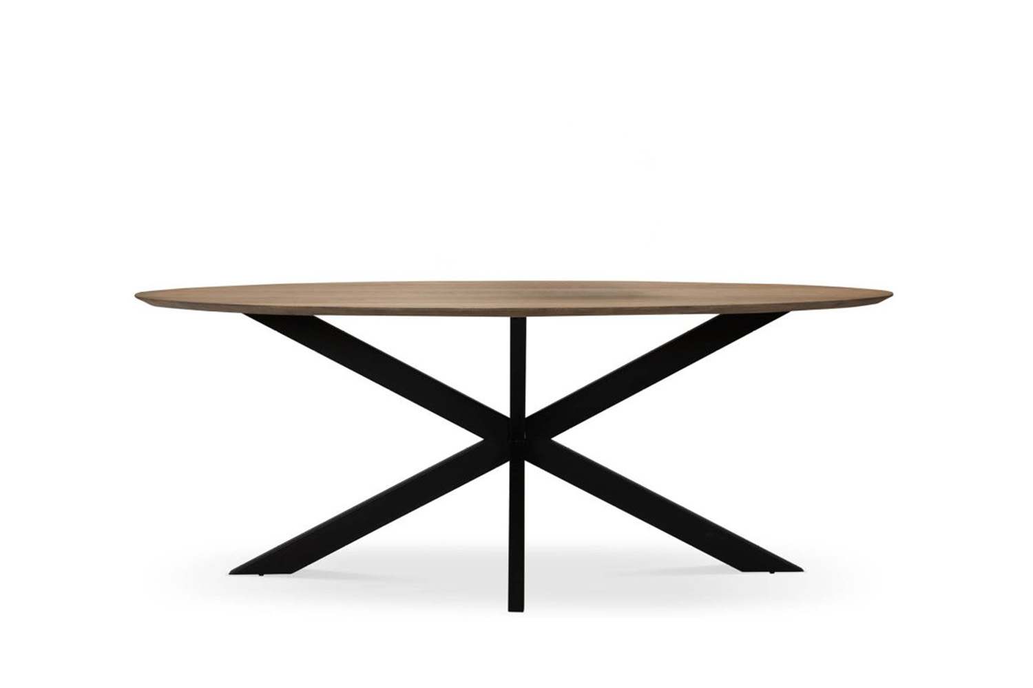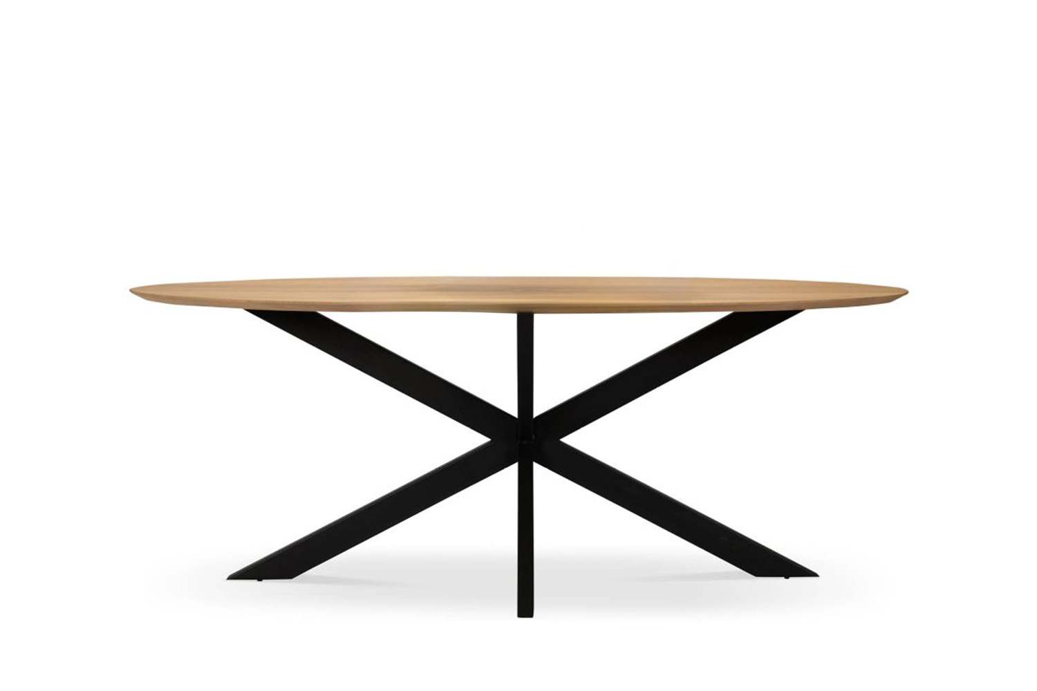Ovale eettafel Berna is een moderne eettafel welke gemaakt is van massief eiken hout. Het blad is leverbaar in vier verschillende kleuren en diverse afmetingen. De eettafel beschikt over een zwart metalen spinpoot.