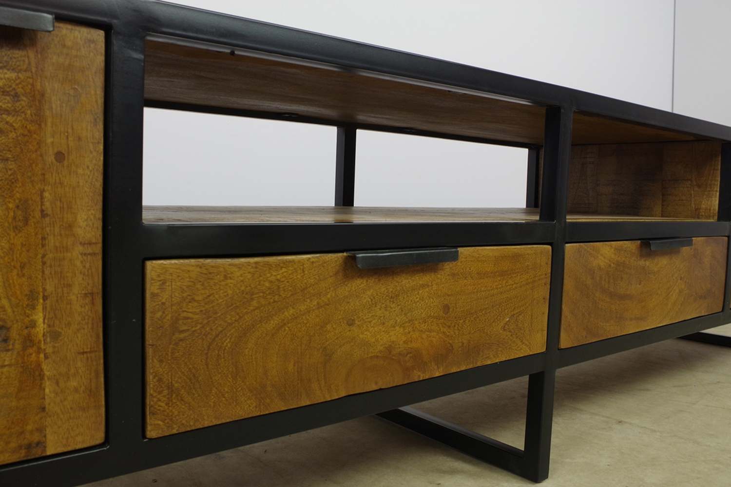 Het industriële woonprogramma Boaz biedt een harmonieuze mix van natuurlijke materialen en staal. Het is gemaakt uit massief mangohout. De serie is perfect voor liefhebbers van industriële meubels die een dosis karakter en persoonlijkheid aan hun interieur willen toevoegen. Hij is robuust, stijlvol en praktisch en hij kan ook eenvoudig in elk interieur worden geïntegreerd. Kies uit verschillende elementen die je prachtig kunt combineren.