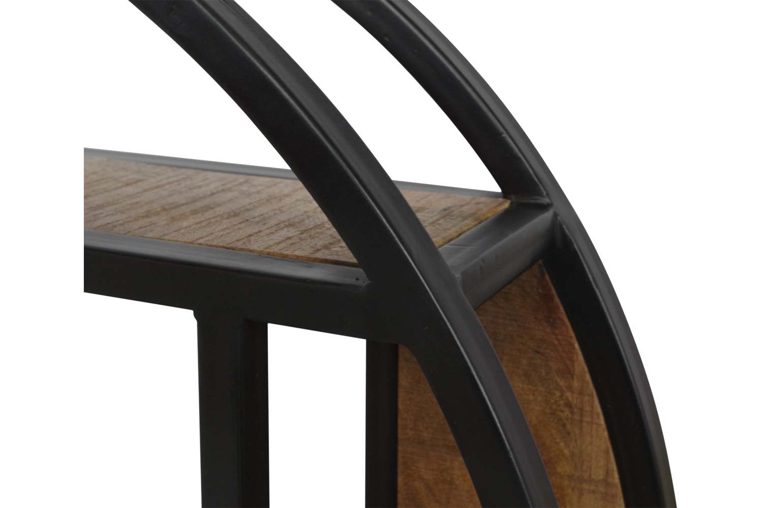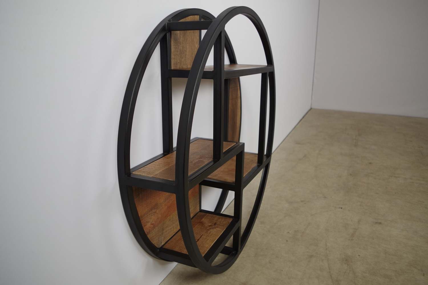 Wandrek Boaz rond is gemaakt van mangohout. Door zijn ronding zorgt dit item ervoor dat het gemakkelijk te decoreren is. Het wandrek heeft een metalen frame dat is behandeld met een zwarte lak. Dit prachtige wandrek heeft een diameter van 75 cm. De materialencombinatie van mangohout en metaal zorgt voor een industrieel karakter en brengt extra sfeer in jouw huis!