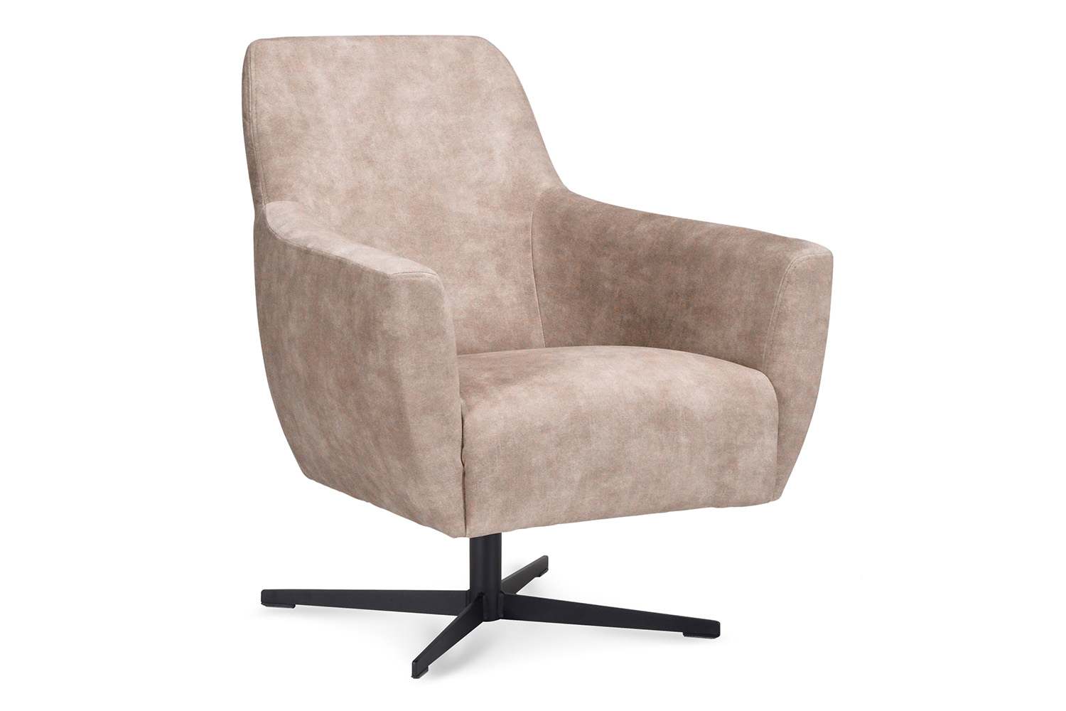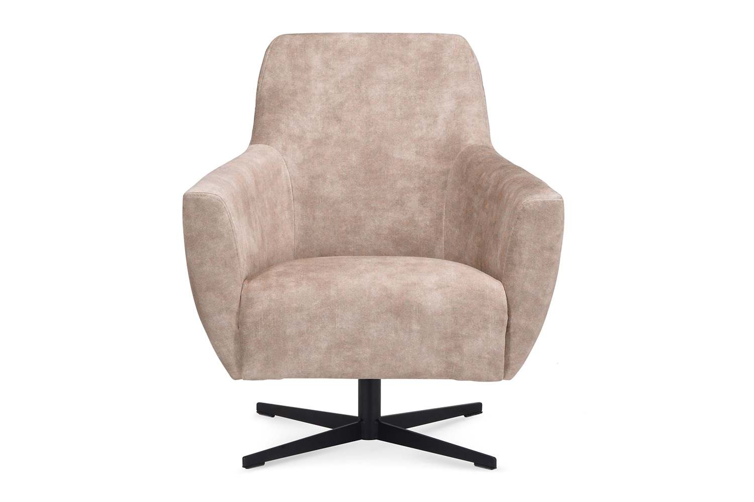 Fauteuil 15535 is een comfortabele fauteuil uitgevoerd in een prachtige stof. De fauteuil beschikt over een 360° draaibare kruispoot welke uitgevoerd is in zwart metaal.