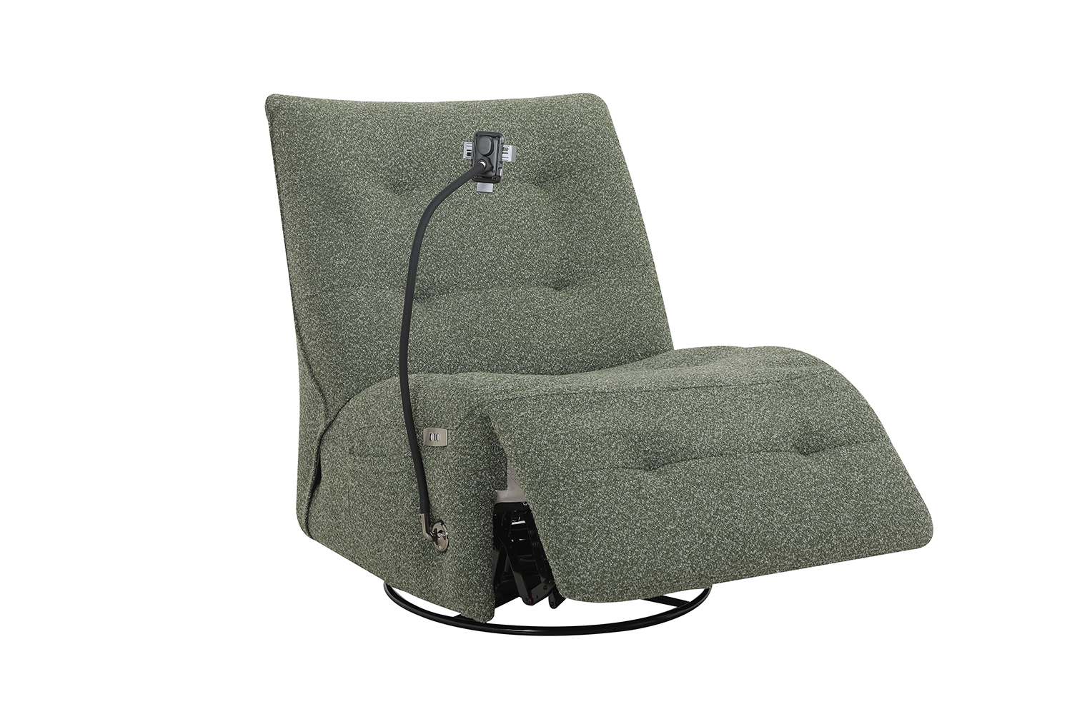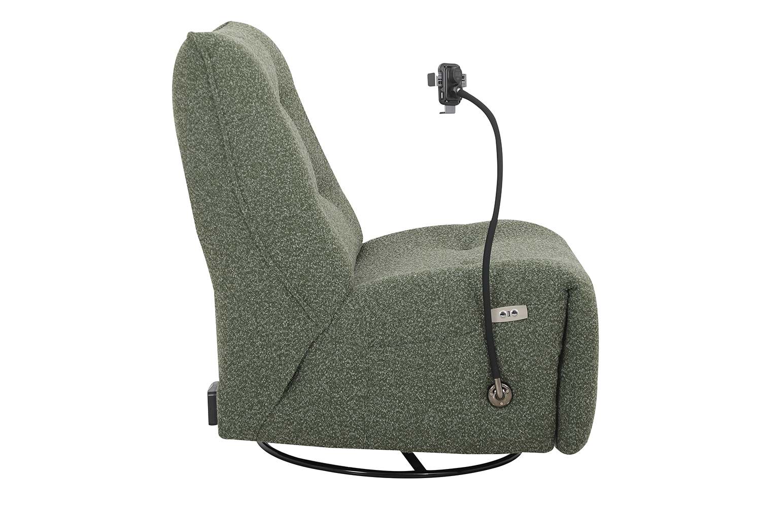Draaifauteuil met schommelfunctie, elektrische relax en een oplaadstation. Ervaar ultiem comfort met de Fauteuil 15601, een moderne draaifauteuil die schommelen combineert met een soepel elektrisch relaxmechanisme. Deze fauteuil nodigt uit tot ontspannen dankzij de ergonomische vormgeving, luxueuze stoffering en stille, vloeiende bewegingen.