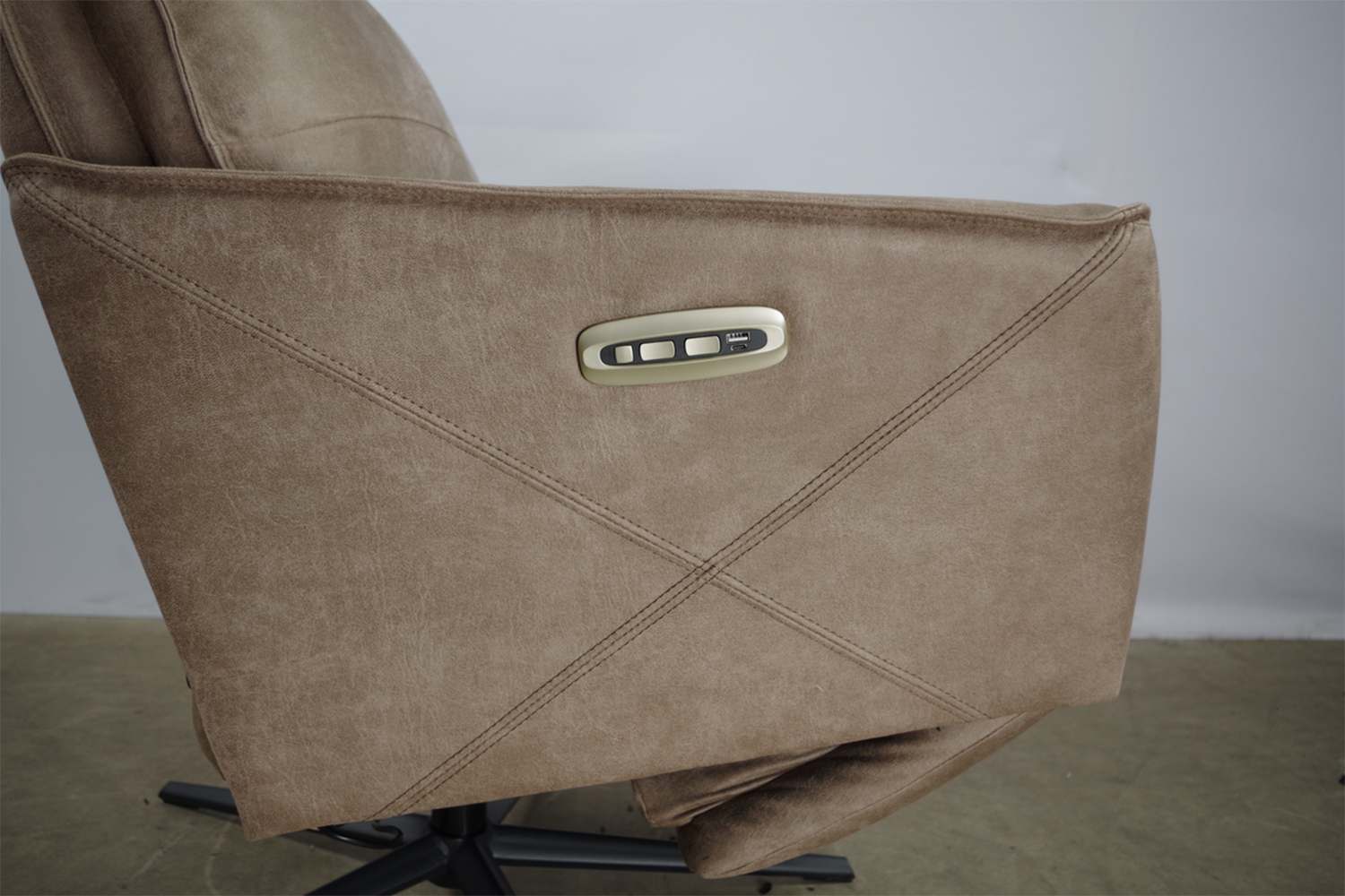 De relax draaifauteuil is gestoffeerd met microleder wat erg geschikt is voor intensief woongebruik. Omdat de stof bestaat uit synthetische vezels is de stof erg sterkt en kan het tegen een stootje. Een meubel met een microleder stoffering heeft een warme uitstraling. De vezels zijn dun van structuur wat ervoor zorgt dat de meubel zacht aanvoelt. De fauteuil is de bedienen met de bedieningspaneel die aan de stoel bevestigd is.