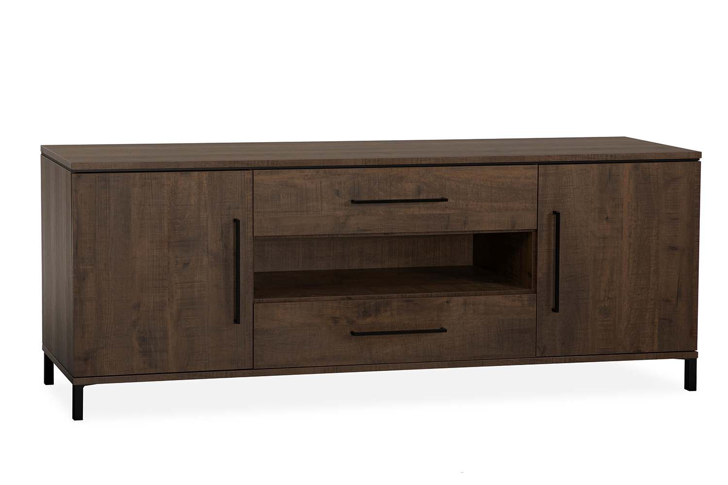 Het dressoir heeft twee deuren, twee lades en één open vak. De lades zijn uitgerust met ladegeleiders en de deuren hebben een soft-close sluiting. Tegen meerprijs is het mogelijk om de open vak uit te lichten met ledverlichting.