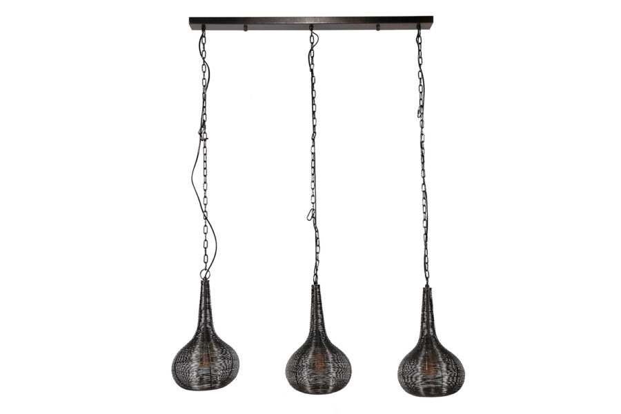 Deze trendy hanglamp is uitgevoerd in een kegelvorm. Door het solderen van de kappen zijn er speels kleine soldeerplekjes over de lamp verdeeld. Dit geeft de lamp een trendy uitstraling. De stroomkabels zijn verwerkt met stoere kettingen. Deze eye-catcher is tot 150 cm in hoogte verstelbaar.