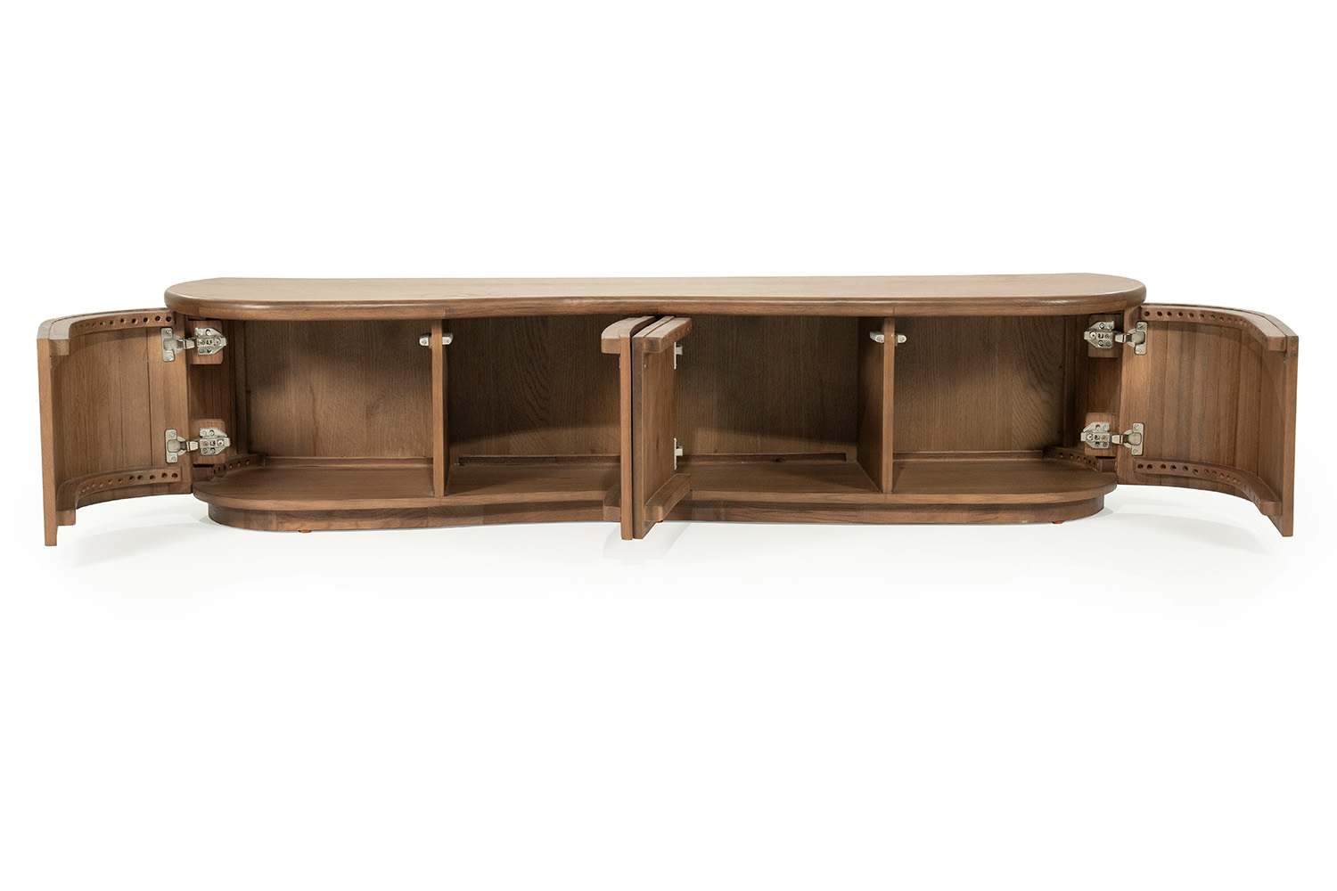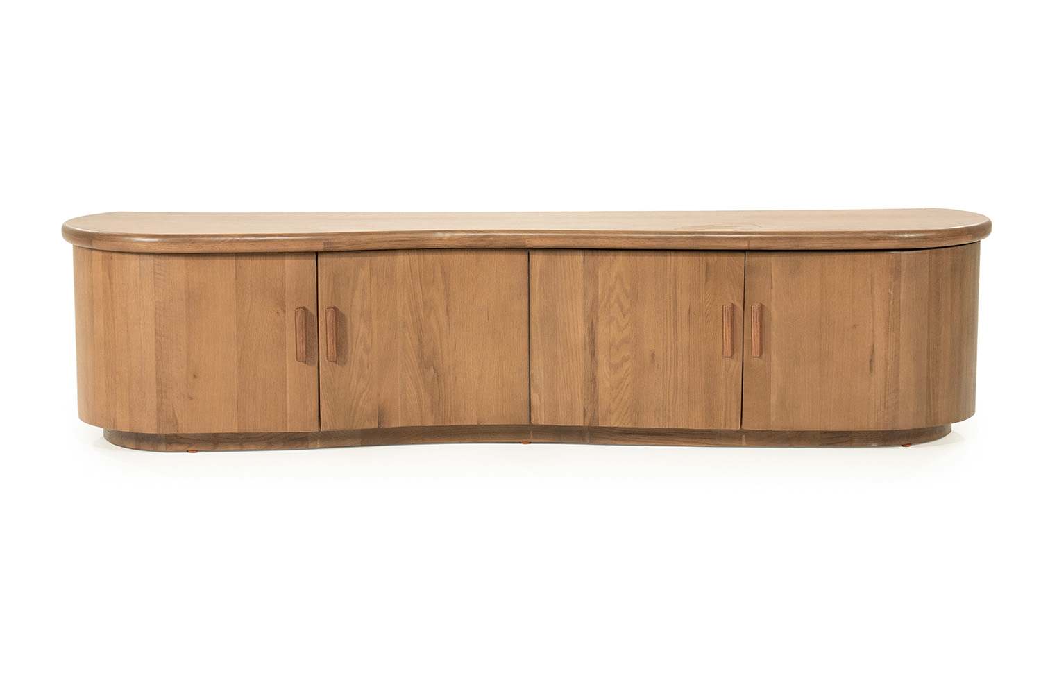 Het Josh tv-meubel is verkrijgbaar in de maten 180 cm en 240 cm en komt in naturel en bruin hout. Dit tv meubel heeft een strak en modern ontwerp, met voldoende ruimte voor je televisie en accessoires. De natuurlijke houtkleuren zorgen voor een warme en uitnodigende uitstraling in de woonkamer.