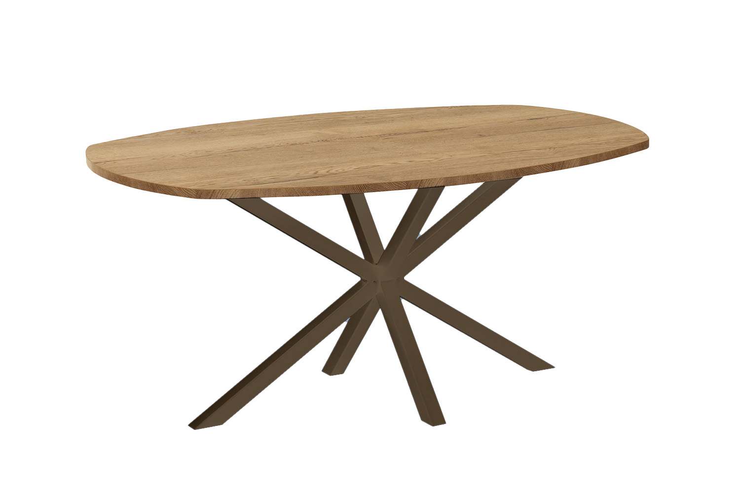 De Kent beschikt over een lamilux blad en een metalen spinpoot in de kleur Anodic brown. Het blad is leverbaar in diverse kleuren en maten en naast de deens ovale variant is de Kent ook leverbaar als recht, rond en ovaal model.