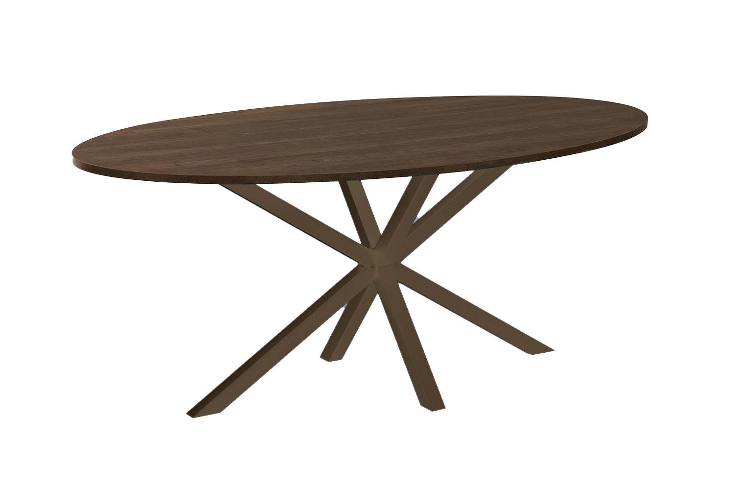 De Kent beschikt over een lamilux blad en een metalen spinpoot in de kleur Anodic brown. Het blad is leverbaar in diverse kleuren en maten en naast de ovale variant is de Kent ook leverbaar als recht, rond en deens ovaal model.
