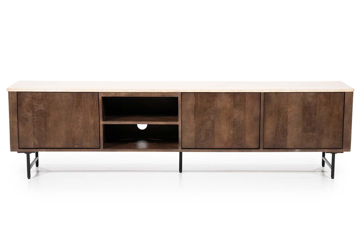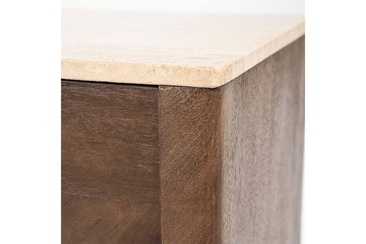 Lio is gemaakt van mangohout en afgewerkt met een luxe travertin blad, wat zorgt voor een elegante en opvallende uitstraling. Een echte eyecatcher die in ieder interieur tot zijn recht komt.