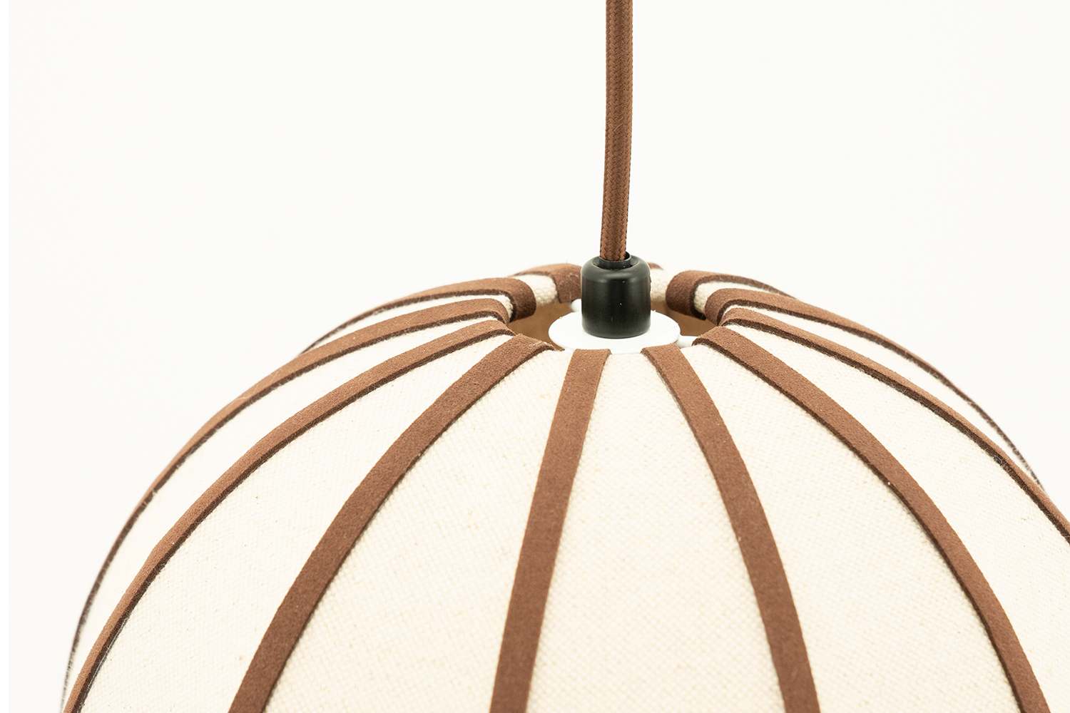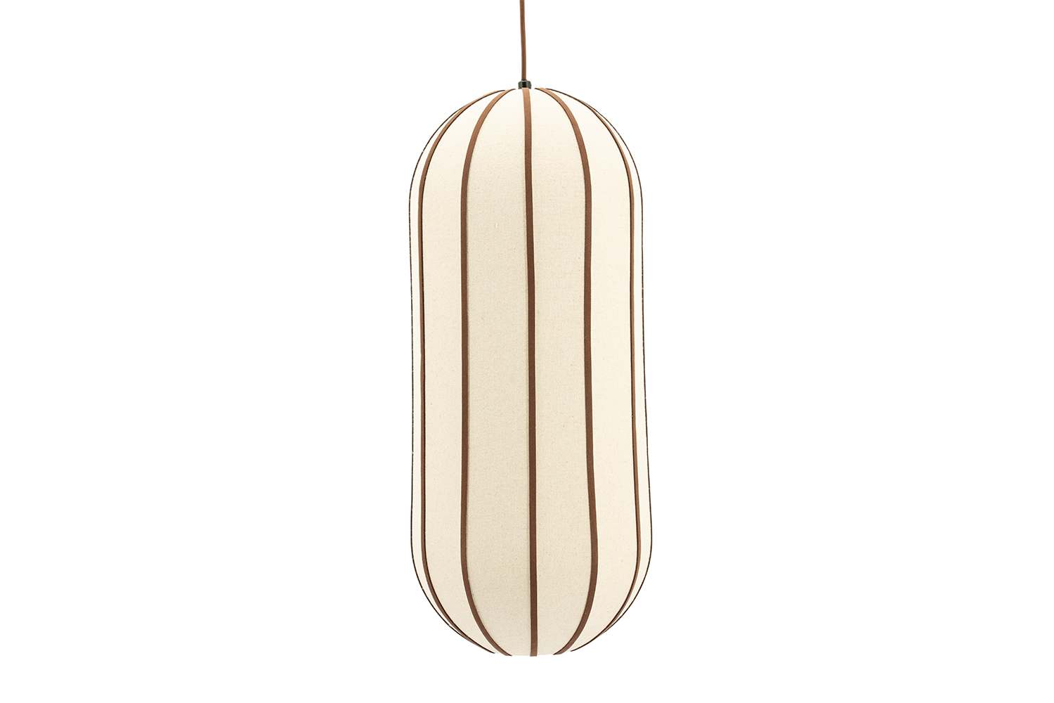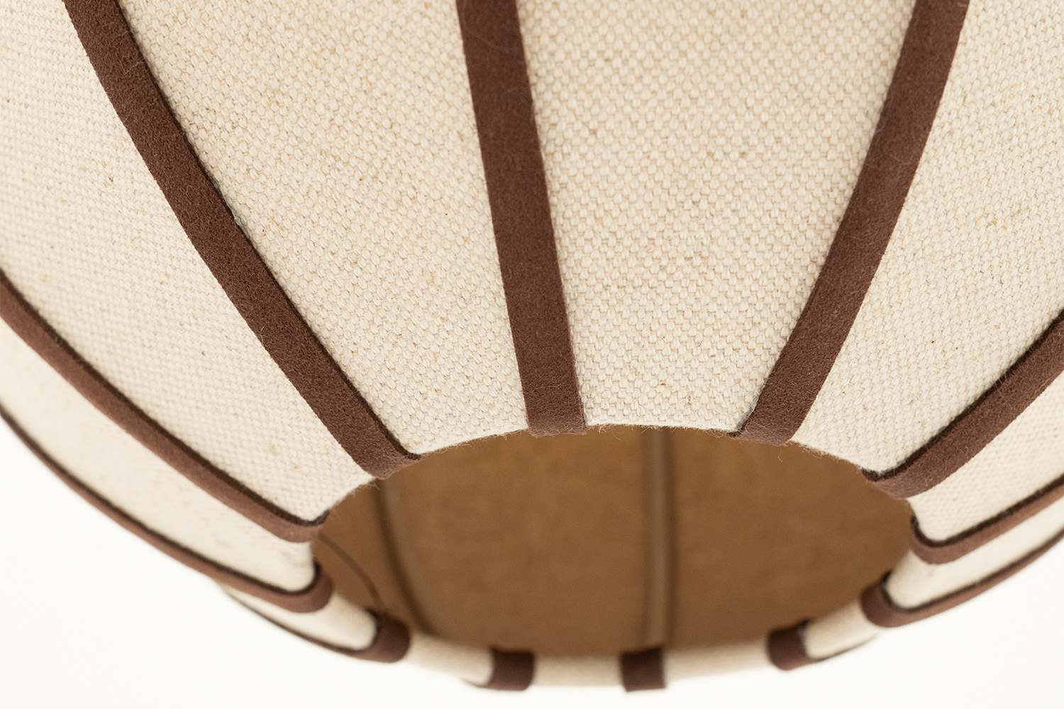 Deze ovaal vormige lamp zorgt voor een rustig en gebalanceerd geheel in de ruimte. De verticale lijnen geven het ontwerp een uniek karakter en zorgen voor een speels lijnenspel. De stoffen kap verspreidt het licht op een warme en sfeervolle manier.