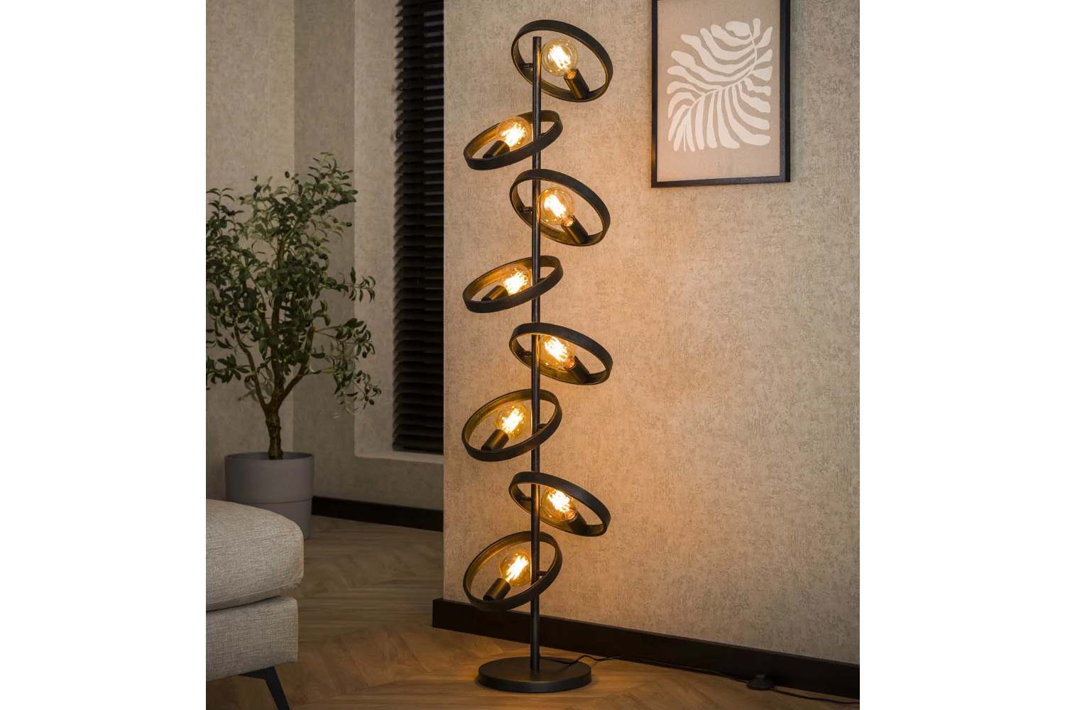 Vloerlamp Hover is uitgevoerd in metaal met een Charcoal finish. Het ontwerp bestaat uit ronde metalen frames die de lichtbronnen omlijsten, wat zorgt voor een industriële en moderne uitstraling. Hover komt goed tot zijn recht naast een bank, fauteuil of in een hoek van de woonkamer als sfeervolle aanvulling op het interieur. Deze vloerlamp is onderdeel van de Hover serie.