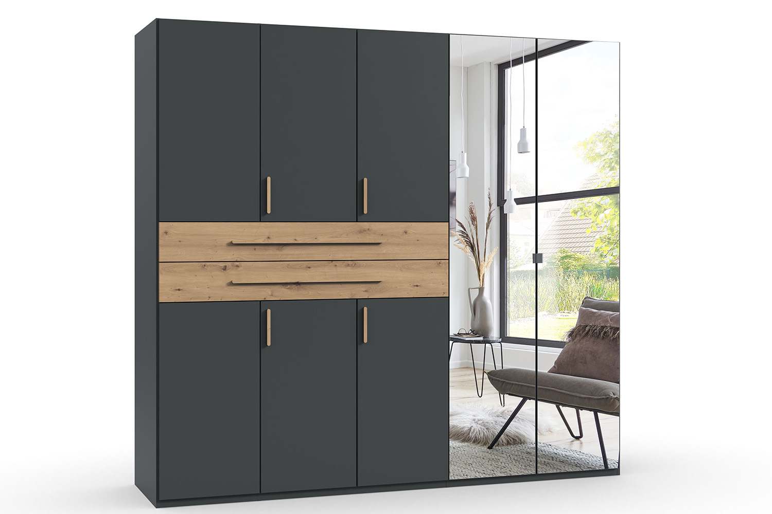 Digit draaideurkast 225 cm links met spiegel grafiet + artisan eiken
