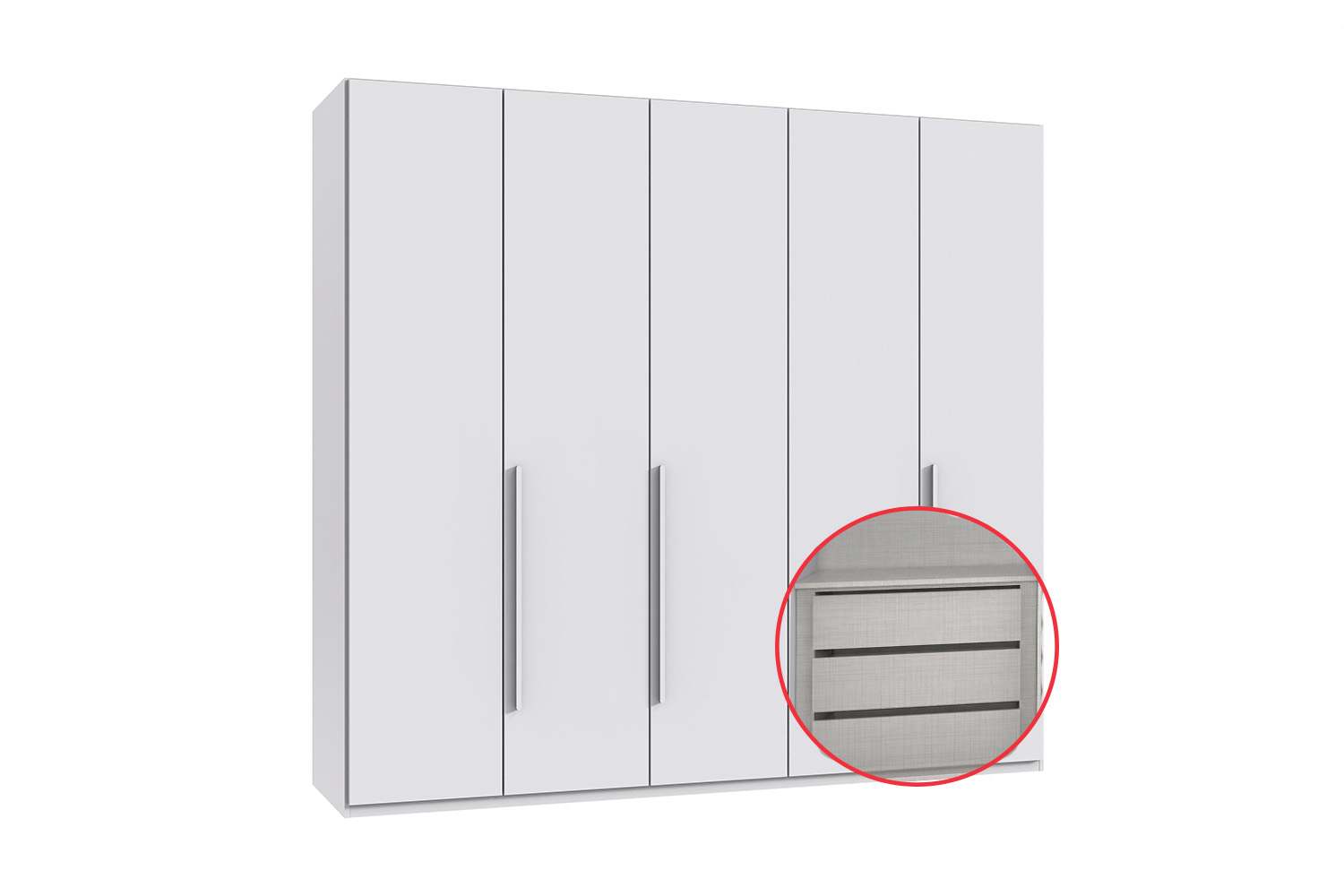 De London kledingkast heeft vijf draaideuren. Deze kledingkast past perfect in een modern interieur. In de kastzijn twee hangroedes en twee legplanken te vinden. De kledingkast is in veel maten te bestellen en heeft bijpassende commodes en nachtkastjes beschikbaar. De kast beschikt ook over 3 legplanken en een lade inzetstuk Vraag bij ons in de winkel naar de mogelijkheden.