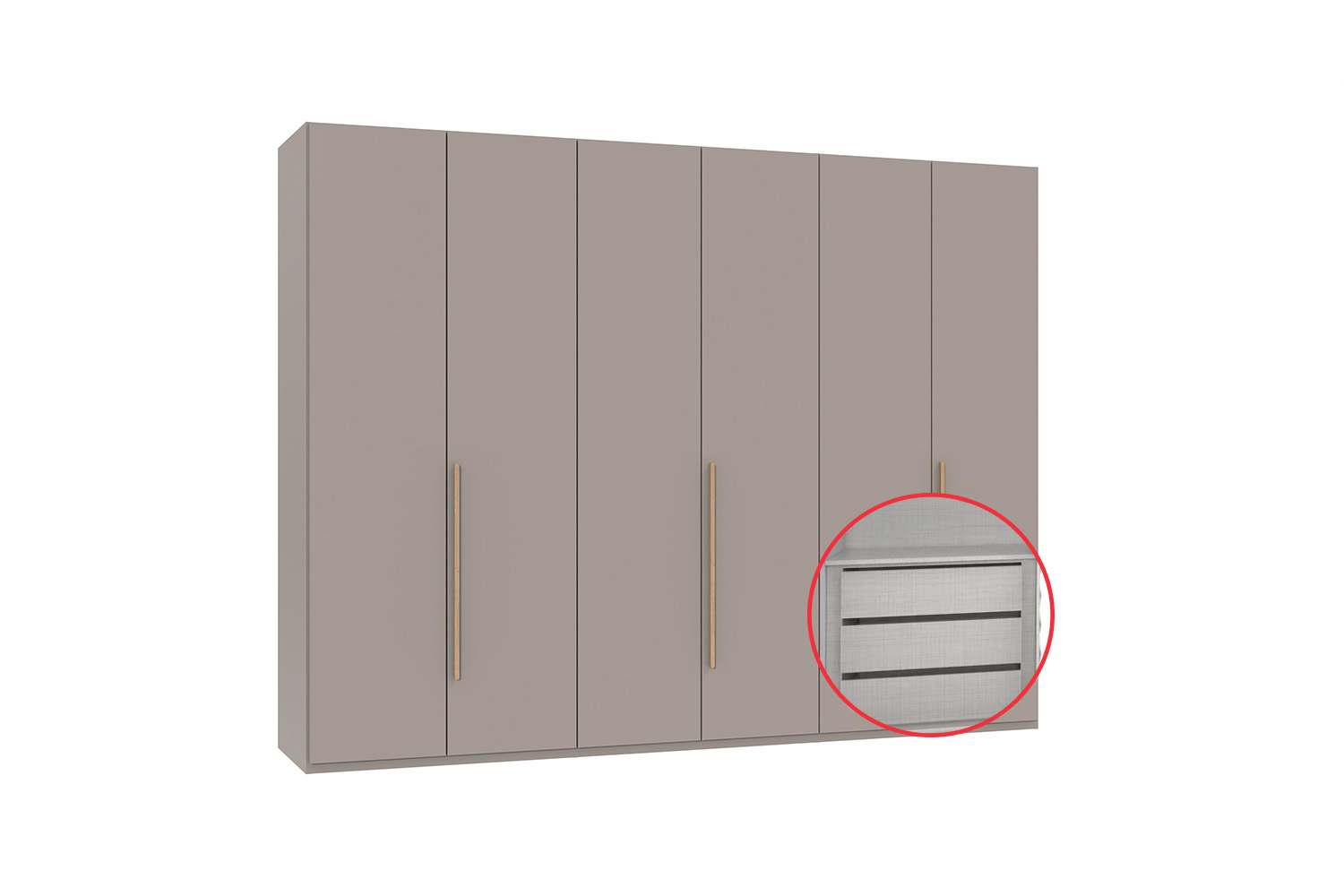 London draaideurkast 270 cm met inzetstuk Sahara grijs + artisan eiken
