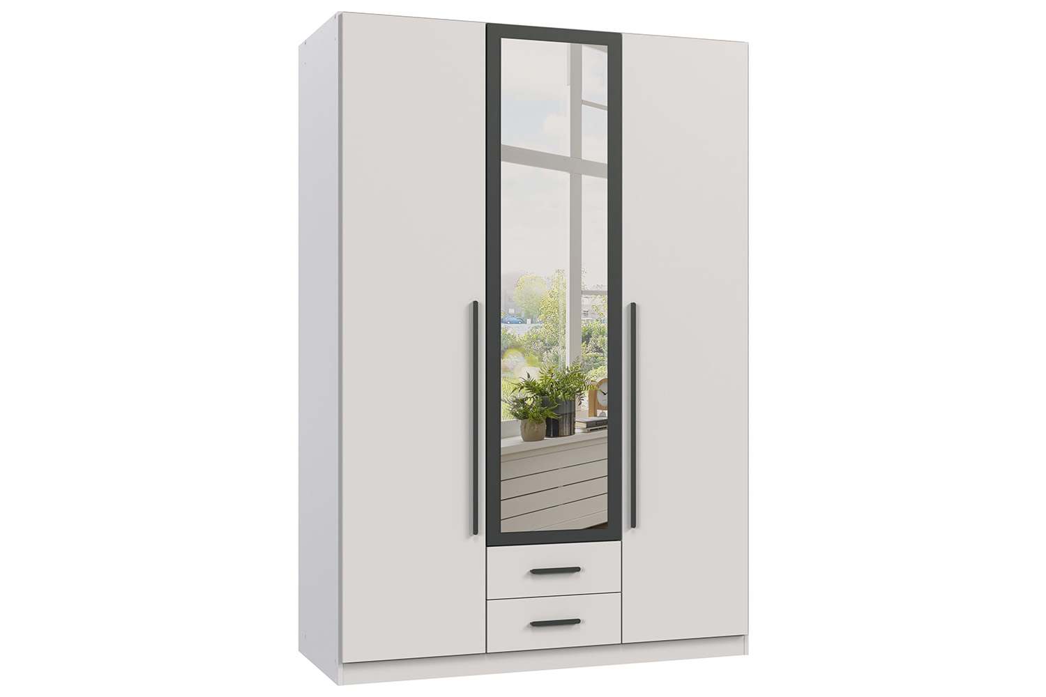 Marburg draaideurkast 135 cm met spiegeldeur wit + grafiet