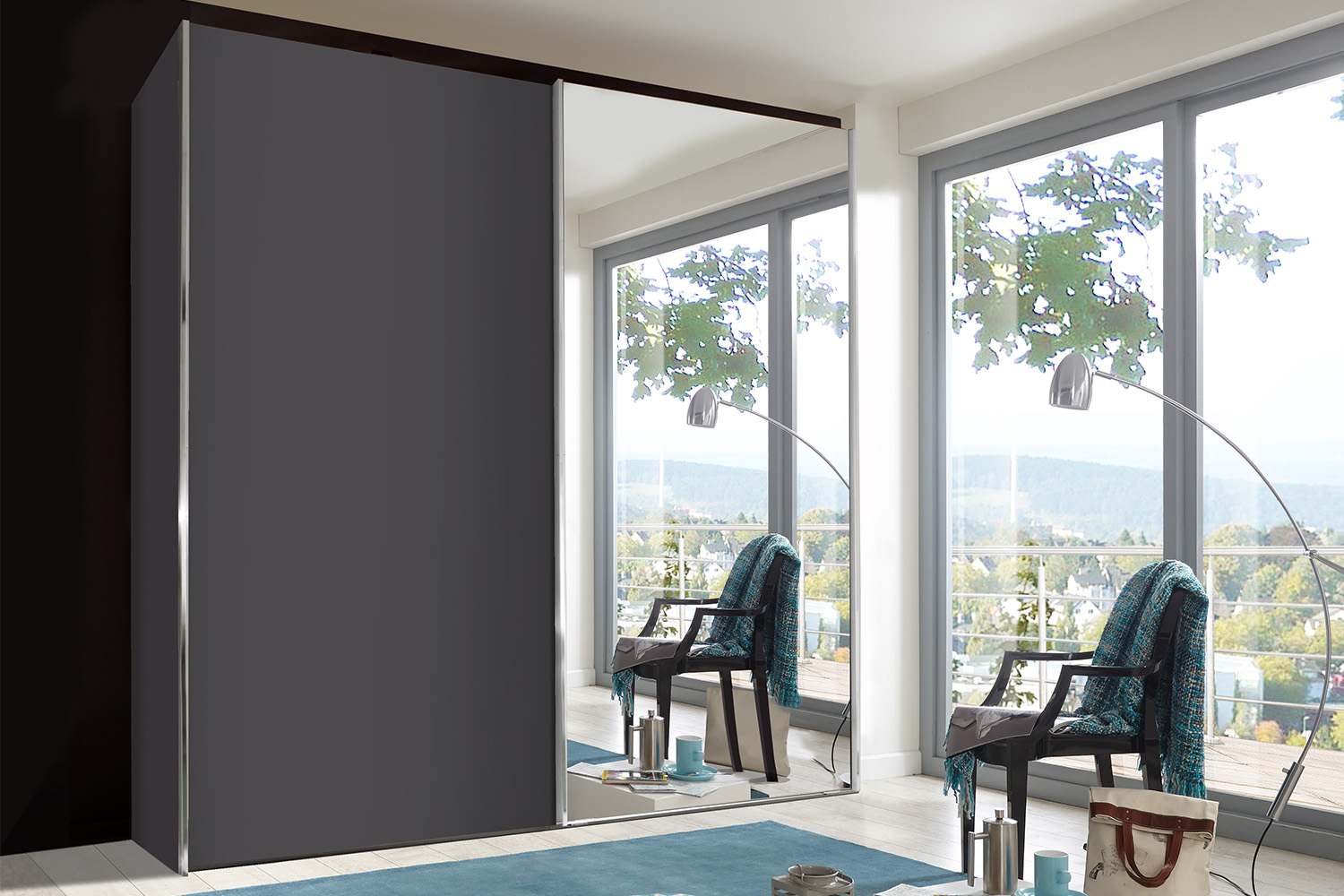 Miami zweefdeurkast 150 cm grafiet met spiegel