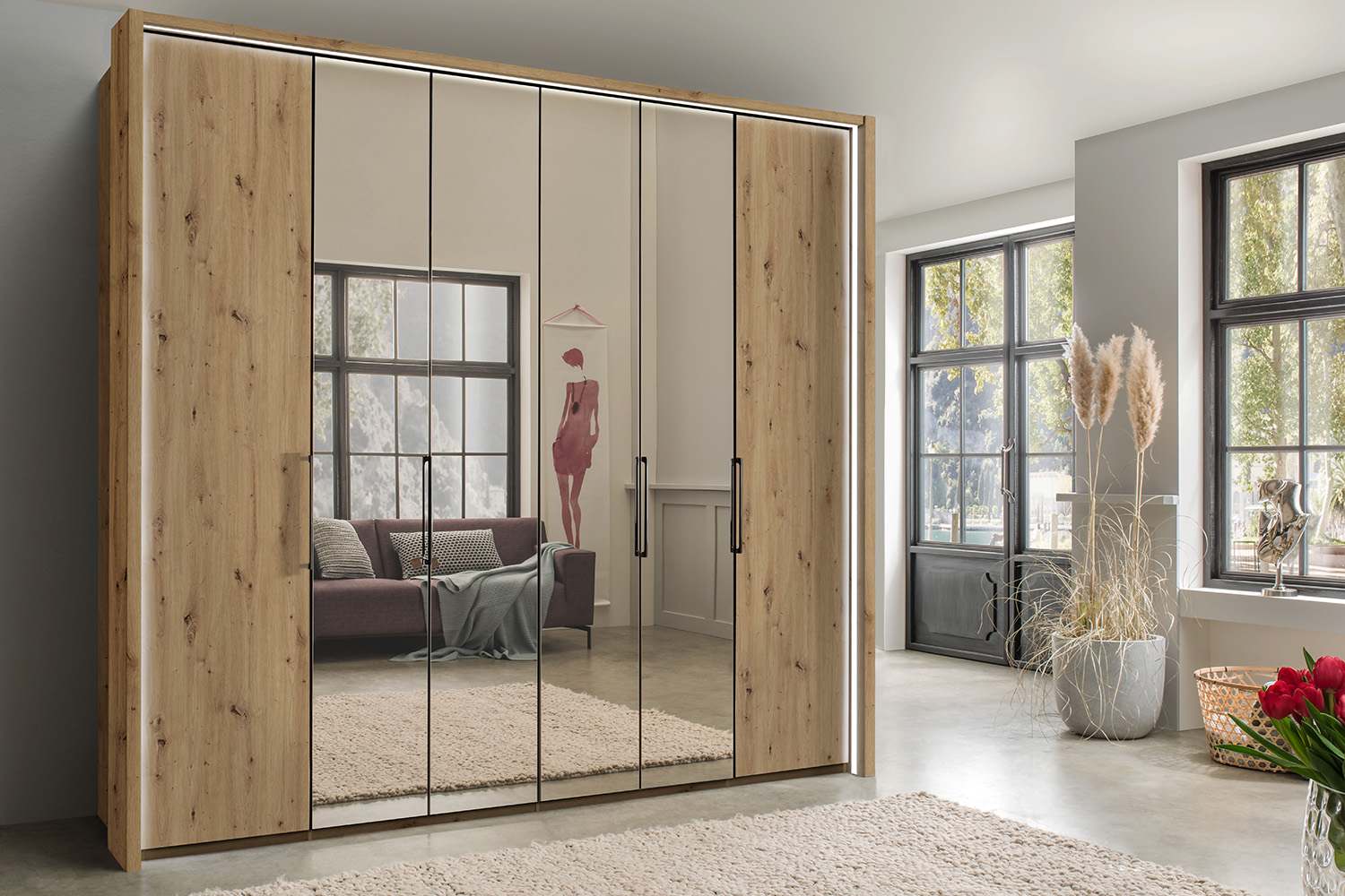 Monaco draaideurkast eiken met spiegel 300 cm