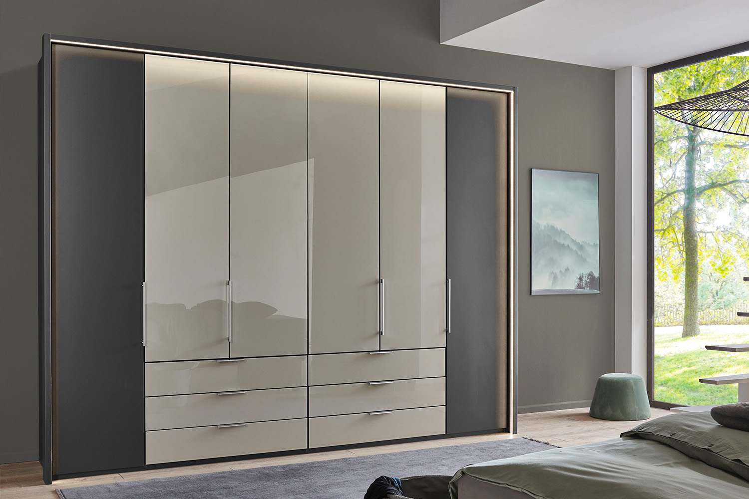 Monaco draaideurkast grafiet met champagne 250 cm