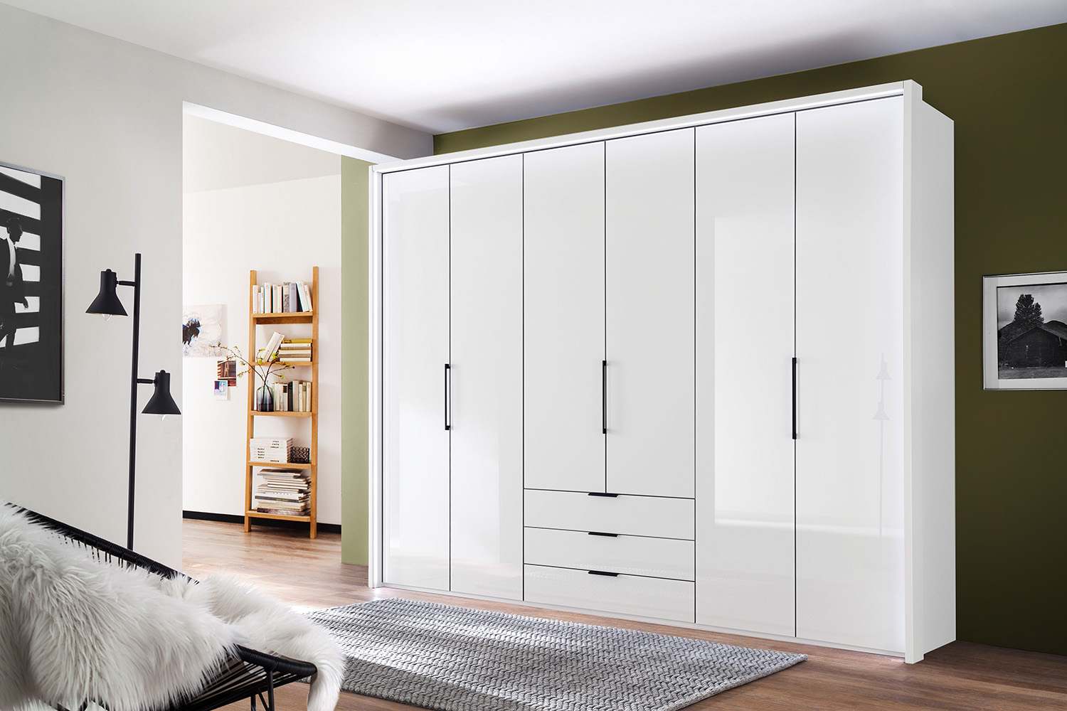 Monaco draaideurkast wit met ladeblok 300 cm