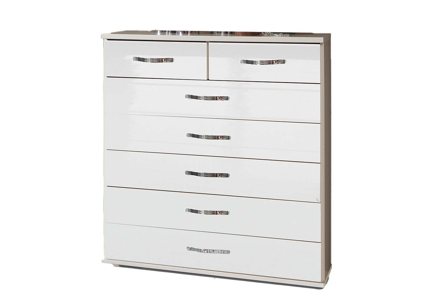 De trio commode past perfect in elk interieur. Deze commode komt uit de trio serie, hierdoor zijn er bijpassende kasten en nachtkastjes beschikbaar. De trio commode is voorzien van 7 lades.